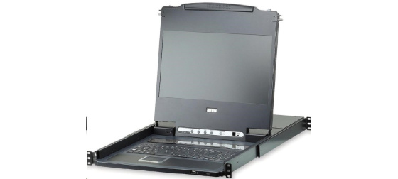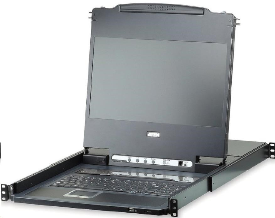 ATEN 8-port KVM USB, DVI, OSD,Single Rail rack, 17.3" FHD LCD, touchpad, klávesnice
