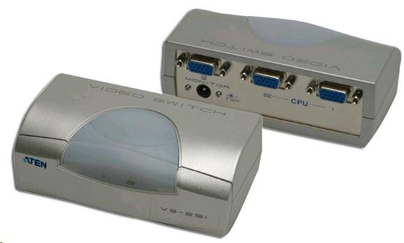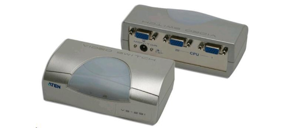 ATEN Elektronický VGA přepínač 2:1 - stolní Aten VS-291 je video přepínač se 2 porty VGA, který umožní připojit až 2 počítače k jednomu monitoru VGA. Toto řešení ušetří použití 1 monitoru a zpřístupní na jednom monitoru až 2 počítače. Zařízení se přepíná tlačítkem. - výběr zdroje signálu pomocí tlačítka na přepínači - elektronické přepínání - rozlišení až 1920x1440@60Hz - VGA, XGA, SVGA, UXGA, Multisync - zesiluje VGA signál do 10m - power save mod při vypnutém PC - až 10m vzdálenost kabelů bez ztráty kvality signálu - aktivní prvek, včetně napájecího adaptéru - DDC, DDC2, DDC2B Compatible. - multiplatformní podpora Windows/Linux/Mac a Sun konektory vstup 15pin HDB 2x Female výstup 15pin HDB 1x Female váha 150g rozměry 120x65x64mm V balení: 1x přepínač 1x napájecí zdroj 1x manuál. , ,
