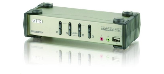 - 4-port KVM přepínač s USB 2.0 a 2.1 surround sound audio podporou