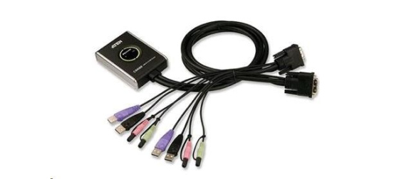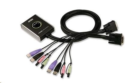 Popis ATEN přepínač KVM 2-port DVI KVMP USB2.0, mini, audio, 1.2m kabely