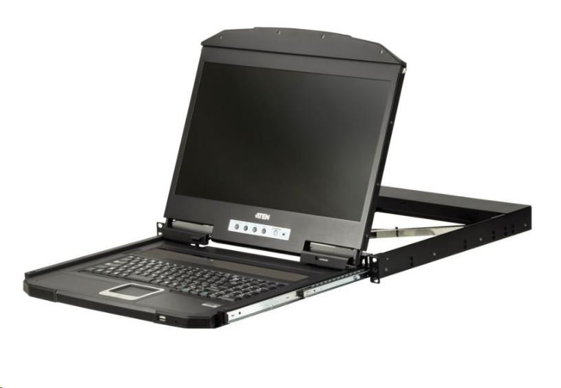 Integrovaná konzole LCD KVM s 18,5 "širokoúhlým LCD displejem s LED podsvícením v jediném krytu s horním a spodním otvorem pro hladký provoz v 1U vysokém stojanu