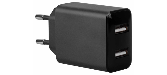 Univerzální síťová nabíječka, 2x USB výstup pro nabíjení smartphonů, tabletů a dalších zařízení.