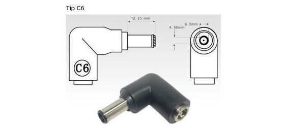 Konektor, kterým lze redukovat konektor C.4 univerzálního síťového adaptéru na konektor C6 (6,5mm x 4,4mm pin) vhodné pro notebooky Sony