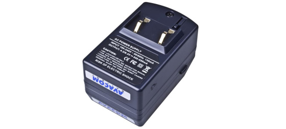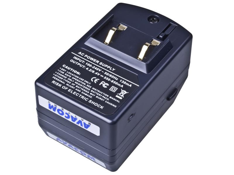 Kompaktní síťová nabíječka pro baterie digitálních fotoaparátů a videokamer.