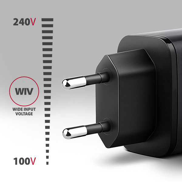 AXAGON ACU-PQ67 využívá moderní GaN technologii (nitrid galia), která umožňuje dosáhnout vysokého výkonu při velmi malých rozměrech a vysoké účinnosti. Díky celkovému výkonu až 67 W je nabíječka vhodná nejen pro smartphony a tablety, ale i pro moderní notebooky podporující USB-C Power Delivery.