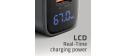 Tělo napájecího adaptéru má příjemný tvar a kompaktní velikost. Ve srovnání s klasickými nabíjecími adaptéry se stejnými parametry je velikost této nabíječky až o polovinu menší. Kombinace malých rozměrů, dosažených pomocí GaN technologie, a širokého rozsahu vstupního napětí, dělá z této nabíječky ideálního pomocníka na cesty. Integrovaný LCD displej přehledně zobrazuje aktuální nabíjecí výkon ve wattech v reálném čase, takže máte snadnou kontrolu nad tím, že připojené zařízení skutečně využívá například rychlé nabíjení.