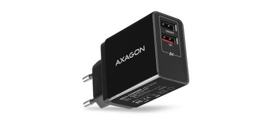 Univerzální USB nabíječka do sítě AXAGON ACU-QS24 pro rychlé nabíjení až dvou mobilních zařízení současně.
