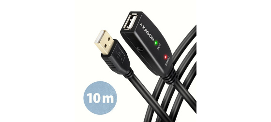 Aktivní prodlužovací USB 2.0 kabel AXAGON ADR-210 délky 10 metrů je ideální k propojení Vašeho počítače s USB zařízením jako je myš, klávesnice, webkamera, tiskárna, skener, plotr a dalšími. Aktivní USB repeater kabel zesiluje průchozí signál a umožnuje připojit USB zařízení na výrazně větší vzdálenost, než Vám umožní pasivní kabel. Dosah kabelu je možné dále prodloužit použitím několika kabelů za sebou.