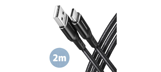 Popis AXAGON BUCM-AM20AB, HQ kabel USB-C <-> USB-A, 2m, USB 2.0, 3A, ALU, oplet, černý