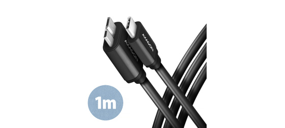 AXAGON BUMM3-CM10AB, SPEED kabel Micro-B USB <-> USB-C, 1m, USB 3.2 Gen 1, 3A, ALU, tpe, černý