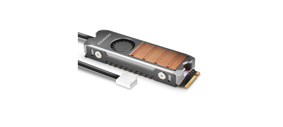 Měděný pasiv s ventilátorem spolu s kovovým rámečkem napomáhají optimálně odvádět teplo vzniklé při provozu M.2 SSD disku a umožňují tak snížit teplotu disku až o 30 °C. Prodlužuje se tak životnost SSD disku a zamezí se zpomalování rychlosti disku tzv. „Thermal Throttling“.