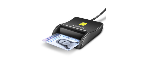 Kompaktní stolní čtečka Smart card / ID card AXAGON CRE-SM3N FlatReader s USB 2.0 rozhraním. Card reader podporuje všechny běžné formáty kontaktních Smart karet, čipových karet a dalších karet včetně kontaktních bankovních platebních karet nebo kontaktních elektronických občanských průkazů *. Čtečka je plně kompatibilní s aplikací eObčanka.