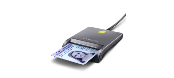 Kompaktní stolní čtečka Smart card / ID card AXAGON CRE-SM3T FlatReader s USB 2.0 rozhraním. Je vhodná zejména jako čtečka občanských průkazů pro použití s počítači, které disponují USB vstupem. Nejrozšířenější USB-A konektor zajistí připojení jak k novému, tak i staršímu počítači.