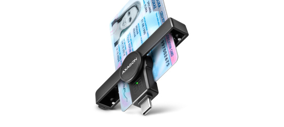 Skládací kapesní čtečka Smart card / ID card AXAGON CRE-SMPC PocketReader s USB-C 480Mbps rozhraním. Je vhodná zejména jako čtečka občanských průkazů pro použití s mobilními telefony, které disponují USB-C vstupem. Moderní oboustranný USB-C konektor usnadňuje použití čtečky, kdy odpadá potřeba správné orientace konektoru při zapojení do počítače nebo telefonu.