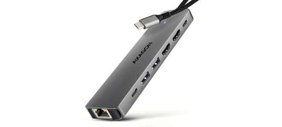 Multiportový USB-C 5Gbps AXAGON HMC-7HX2 DUAL 4K DISPLAY 7in1 hub rozšíří váš notebook, počítač nebo telefon o sedm portů. Váš notebook připojíte k hubu přes 15 cm dlouhý USB-C kabel. Okamžitě tak máte k dispozici připojení pro dva 4K monitory, tři USB zařízení a konektor RJ-45 pro Gigabitovou ethernet síť. Zároveň získáte možnost napájení notebooku pomocí technologie Power Delivery. Replikátor portů vám poskytne jednoduchou a skladnou dokovací stanici 7v1 pro moderní notebooky.