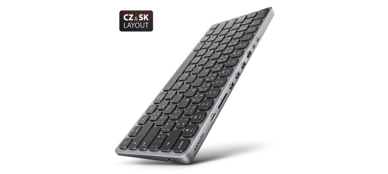 Klávesnice, vestavěná v elegantním hliníkovém těle hubu, je osazena chiclet klávesami s nůžkovým mechanismem a 2 mm zdvihem pro přesné a tiché psaní. Klávesnice nabízí nastavitelné podsvícení v 5 úrovních, 12 multimediálních kláves a možnost zvětšení sklonu pro pohodlné a ergonomické užívání. Samozřejmostí je potisk kláves s česko - slovenskou lokalizací.