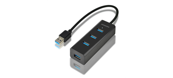 4-portový USB 3.0 hub AXAGON HUE-S2B s možností externího napájení a podporou rychlonabíjení na všech portech. Lehký malý rozbočovač s elegantním matným plastovým tělem připojí snadno a rychle k počítači až čtyři USB zařízení současně. Napevno uchycený USB kabel dostatečné délky 30 cm ideální pro použití s notebooky.