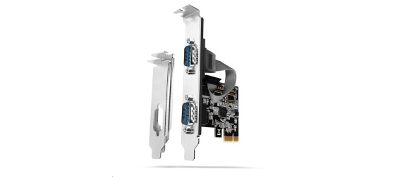 PCI-Express karta AXAGON PCEA-S2N rozšíří stolní počítač o dva sériové RS-232 porty s DB-9 konektory.