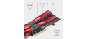 Redukce je univerzální a kompatibilní s jakoukoliv základní deskou a bude fungovat i v základních deskách bez podpory PCI-Express bifurkace. Za touto unikátní funkčností stojí kvalitní čip společnosti Asmedia. Díky PCI-Express 3.0 rozhraní kompatibilním s x8 a x16 sloty je možno dosáhnout maximálních přenosových rychlostí disků až 4000 MB/s (4 GB/s).