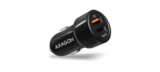 Univerzální USB auto nabíječka AXAGON PWC-QC5 pro rychlé nabíjení až dvou mobilních zařízení současně.