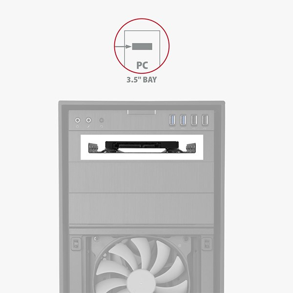 Přesné otvory a dodávané šroubky zajistí snadnou a bezproblémovou montáž rámečku do počítačové skříně. Kovová konstrukce a profil rámečku napomáhají odvodu tepla z disku.