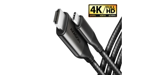 Moderní USB-C -> HDMI aktivní kabelová redukce AXAGON RVC-HI2MC pro připojení HDMI monitoru/TV/projektoru k notebooku nebo telefonu pomocí USB-C konektoru.