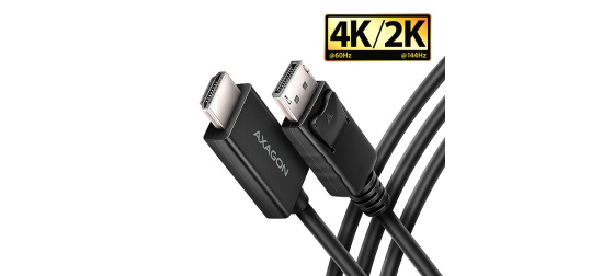 DisplayPort -> HDMI aktivní kabel - redukce AXAGON RVD-HI20C2 pro připojení HDMI monitoru/TV/projektoru k počítači s výstupem DisplayPort.