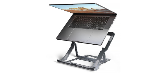 Stojan lze snadno složit do kompaktních rozměrů, což umožňuje pohodlné přenášení kamkoli potřebujete. Jeho elegantní design v šedé barvě nejen stylově doplní váš pracovní stůl, ale také přináší praktické funkce, které oceníte při každodenním používání.