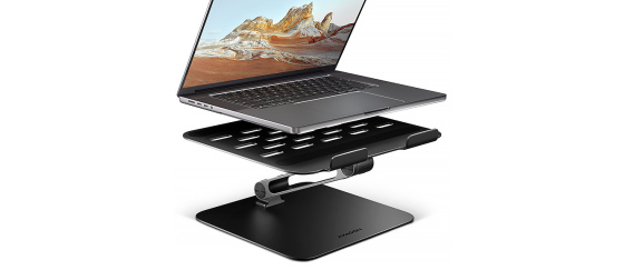 Velkou výhodou je chytré řešení s dvojitým kloubem, které umožňuje plynulé nastavení výšky obrazovky notebooku tak, aby byl v jedné rovině s vaším externím monitorem. Tím získáte další pracovní plochu ve správné úrovni očí, což výrazně zlepšuje ergonomii a pohodlí při práci, a zároveň zvyšuje vaši produktivitu.