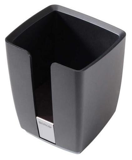 Elegantní zásobník ClickShare pojme tlačítka, když nejsou zrovna používána. Do jednoho zásobníku se vejdou až čtyři tlačítka.