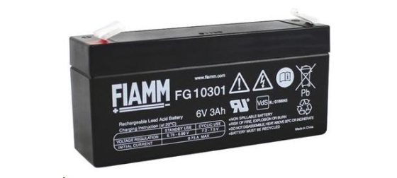 Bezúdržbový, ventilem řízený olověný akumulátor FIAMM s životností 5 let.