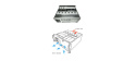 Osazen vyjímatelný prachový filtr a uzamykatelná dvířka. Na bocích skříně pak jsou předpřipraveny otvory se závity pro montáž lineárními kuličkovými výsuvů (ližin) o délce 450 mm (18“) s výsuvem 900 mm. Např. doporučené RL450.18.