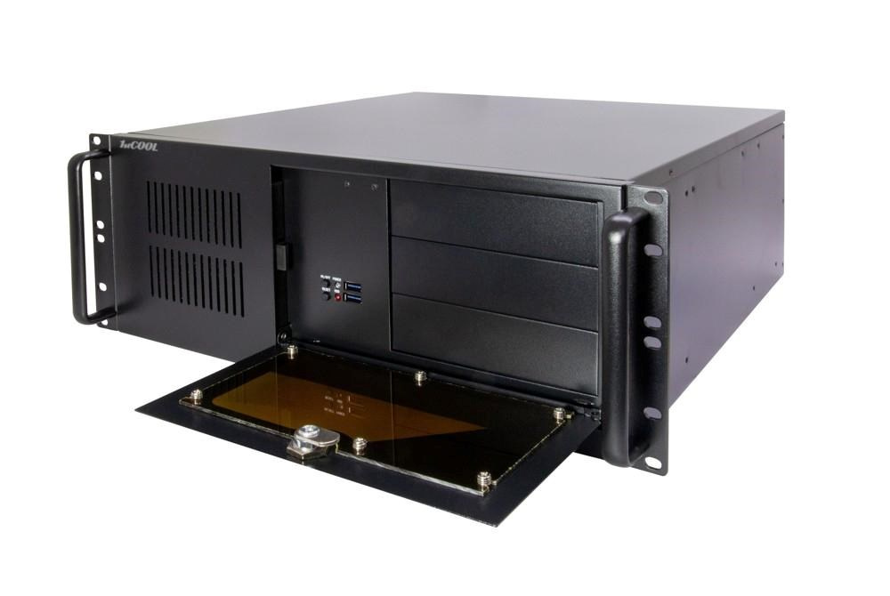 IPC 4U-450 je velice kvalitní serverová skříň určená pro montáž do rackového rozvaděče 19". Skříň je vyrobena z plechu o dnes již málo vídané sile 1,2mm. Čelní panel je zakryt odklopnými plechovými dvířky s možností uzamčení. Při zavřeném panelu jsou viditelné pouze indikační LED přes průhlednou část dvířek. Po odklopení dvířek jsou k dispozici ostatní ovládací prvky.