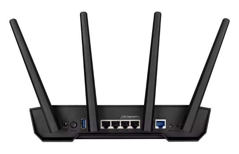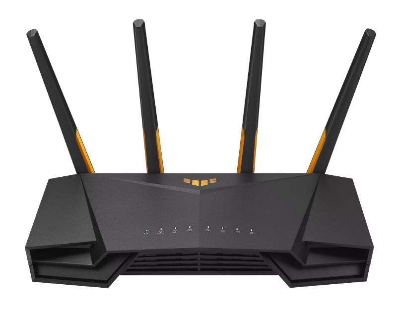 TUF Gaming AX3000 V2 Dual Band WiFi 6 Gaming Router with Mobile Game Mode, 3 steps port forwarding, 2.5Gbps port, AiMesh for mesh WiFi, AiProtection Pro network security Ultrafast WiFi 6 - Enjoy speeds up to 3000 Mbps and 4X network efficiency with OFDMA and 160 MHz channels. True Multi-Gigabit wired speeds - Aggregated 2 Gigabit LAN connections, wired 2.5Gbps port and WiFi 6. Easy Port Forwarding in 3 Steps - Open NAT makes port forwarding simple, eliminating frustrating and complicated manual configuration. ASUS AiMesh Support – Create a flexible, seamless whole-home mesh network with AiMesh-compatible routers. Tested Durability and Stable Operation - TUF Gaming AX3000 V2 is built to be durable and undergoes verified testing to ensure reliable, stable operation. 802.11a : up to 54 Mbps 802.11b : up to 11 Mbps 802.11g : up to 54 Mbps WiFi 5 (802.11ac) (1024QAM) : up to 867 Mbps WiFi 6 (802.11ax) (2.4GHz) : up to 574 Mbps WiFi 6 (802.11ax) (5GHz) : up to 2402 Mbps 2.4GHz 2x2 5GHz 2x2 RJ45 for 2.5 Gigabits BaseT for WAN x 1, RJ45 for Gigabits BaseT for LAN x 4, USB 3.2 Gen 1 x 1,. ASUSTeK Computer Inc., Li-Te Road 15 Peitou, Tchaj-pej Tchaj-wan Čínská republika, shop_cz@asus.com