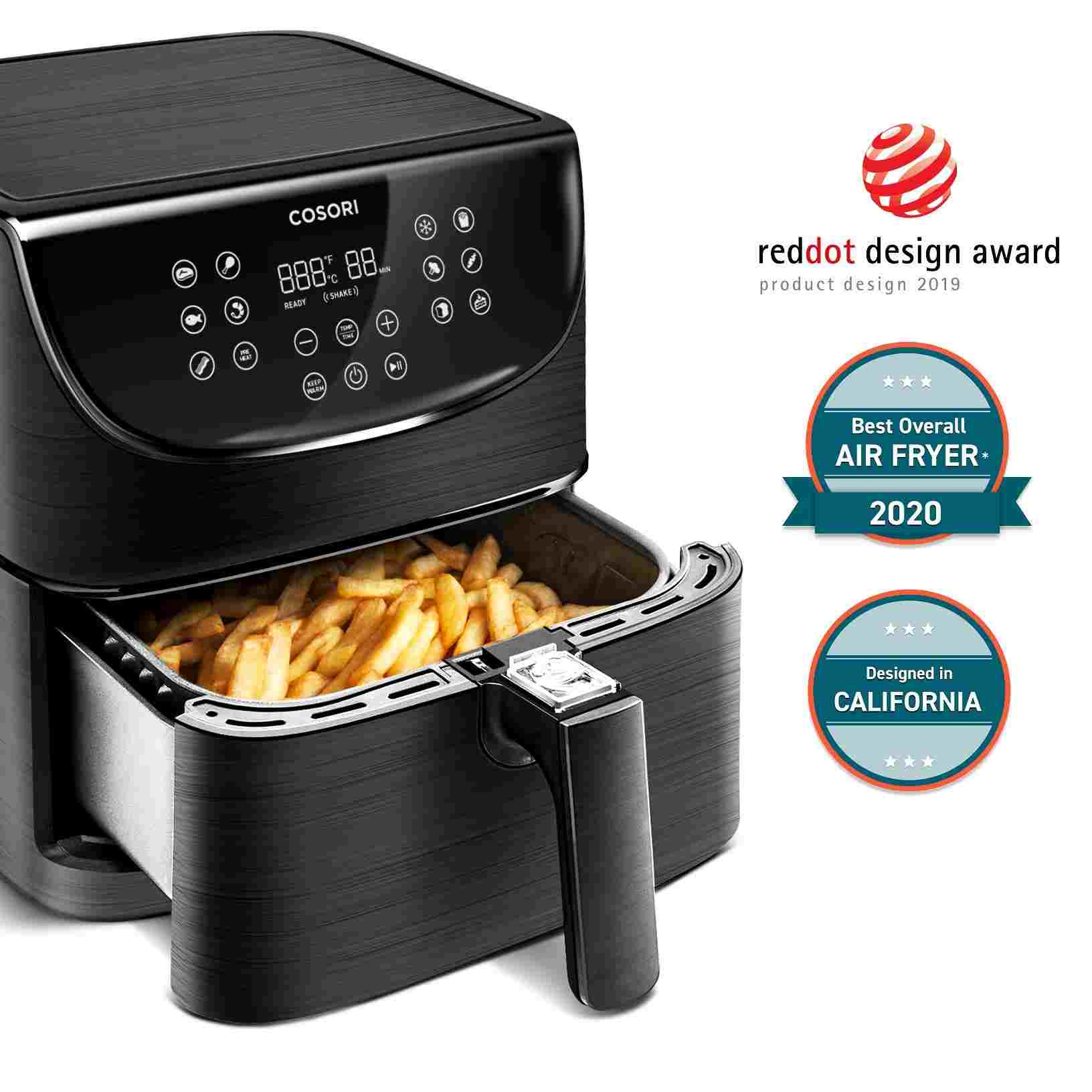 Design horkovzdušné fritézy COSORI CP158-AF byl navržen v Kalifornii. Díky své praktičnosti, funkcím, ovládání i přehlednému dotykovému nakloněnému LED displeji se snadno přístupnými tlačítky získal také prestižní ocenění Red Dot Award a Design Award za nejlepší design. Povrchová úprava je navíc odolná vůči otiskům prstů, takže fritéza bude ve vaší kuchyni vypadat pořád skvěle. Podle prodejních statistik je značka COSORI také nejprodávanější značkou horkovzdušných fritéz v USA.