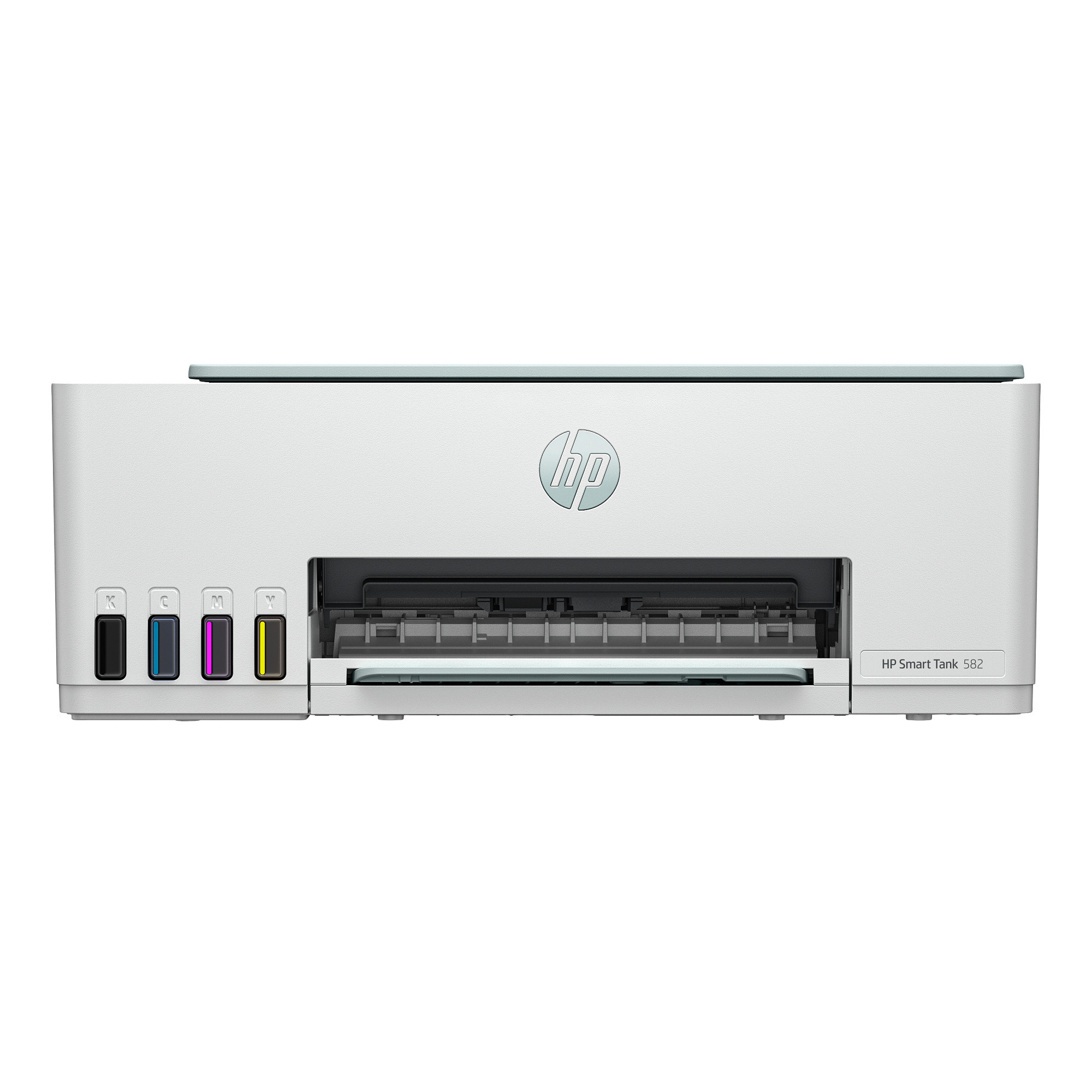 | Obsah balení | Tiskárna HP Smart Tank 582 All-in-One; 3x 135ml originální lahvička s černým inkoustem HP GT53XL (1VV21A); 50ml originální lahvička s azurovým inkoustem HP GT52 (6ZE03A); 50ml originální lahvička s purpurovým inkoustem HP GT52 (6ZE04A); 50ml originální lahvička se žlutým inkoustem HP GT52 (6ZE05A); Černá originální tisková hlava HP; Tříbarevná originální tisková hlava HP; Průvodce nastavením; Referenční příručka; Leták s upozorněním na inkoust; Regulační leták; Záruční leták; Napájecí kabel; Další informace o plnění a výtěžnosti jsou k dispozici na adrese https://www.hp.com/go/learnaboutsupplies. |