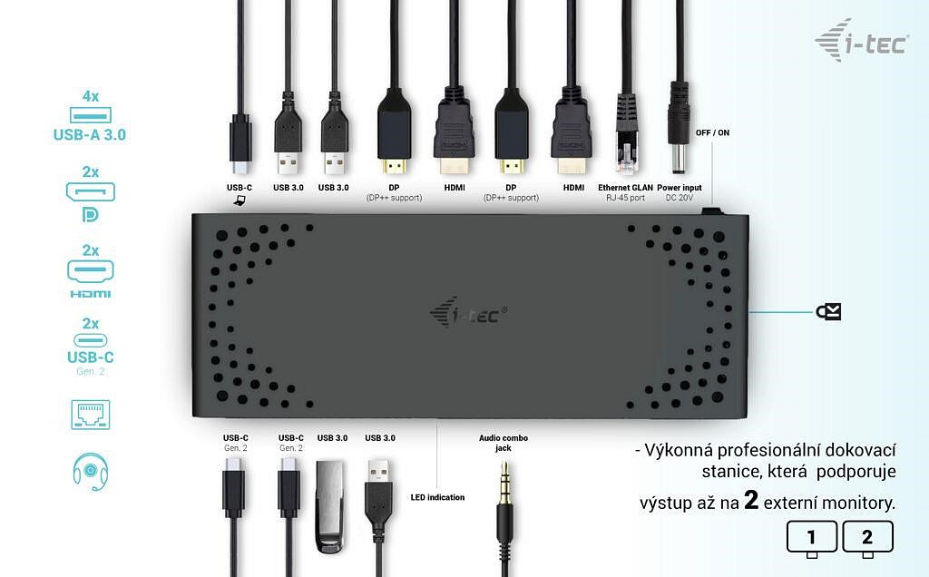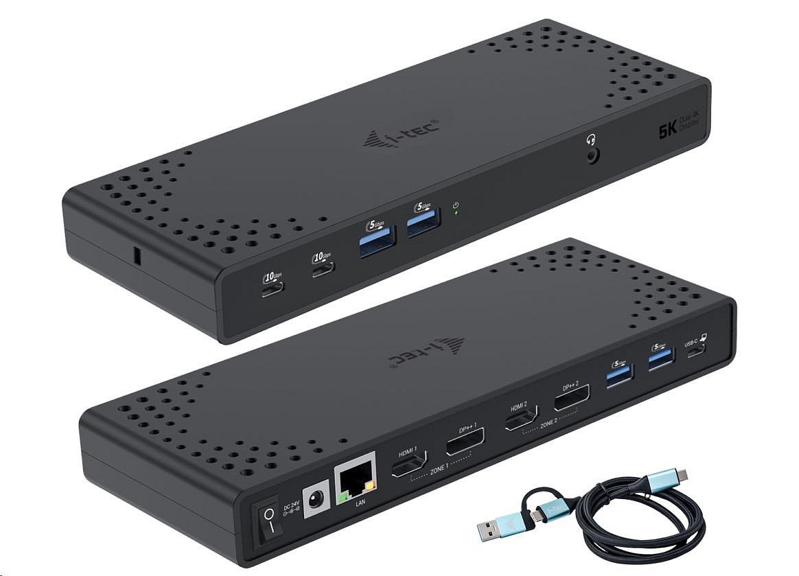 Popis BAZAR - i-tec USB 3.0 / USB-C / Thunderbolt Dual Display Docking Station + PD 100W - Po opravě (Náhradní krabice)
