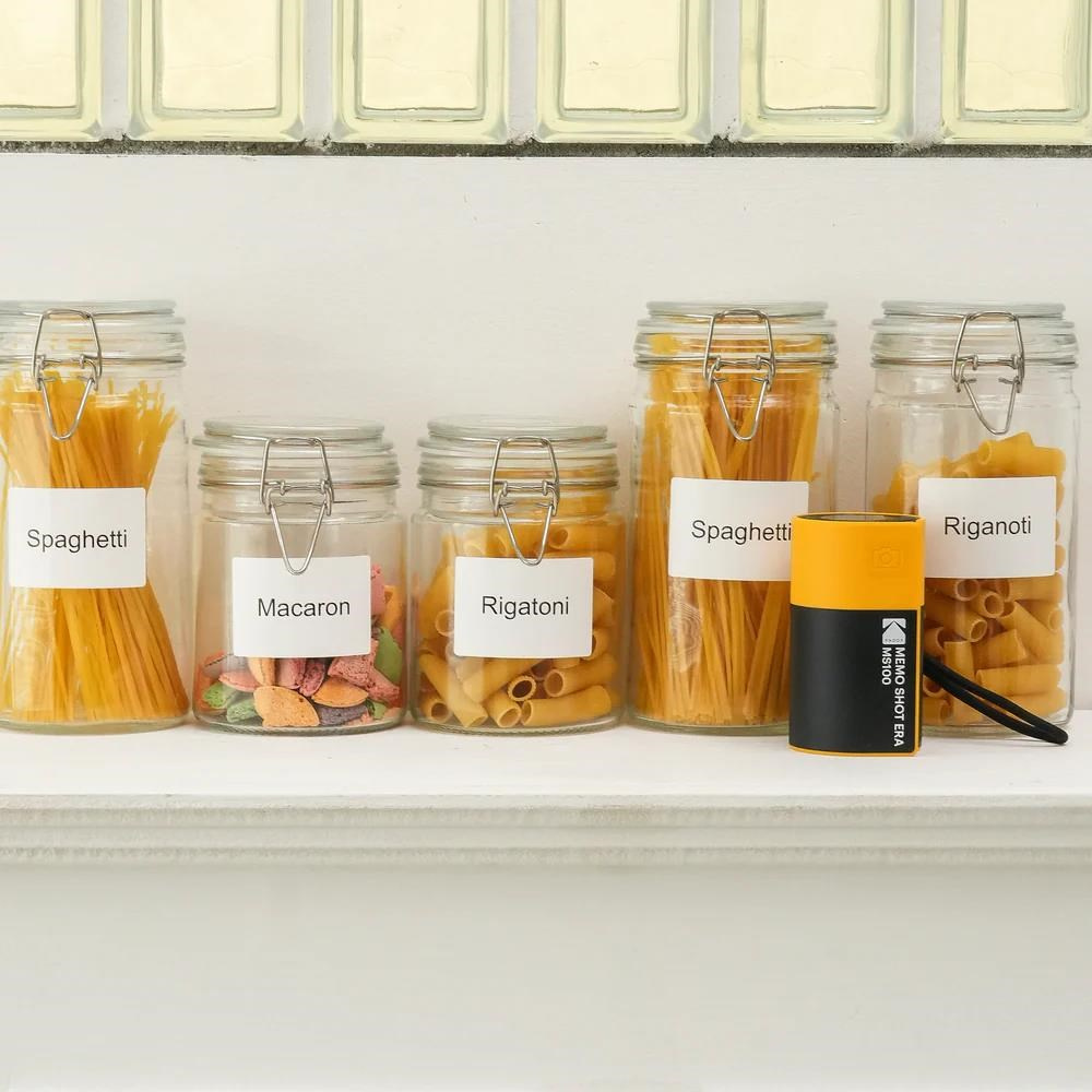 Sada etiketových kazet kompatibilních s fotoaparátem KODAK Memo Shot Era obsahuje 9 rolí: 6 bílých, 1 zelenou, 1 růžovou a 1 žlutou. Každá role umožňuje tisk až 30 etiket.