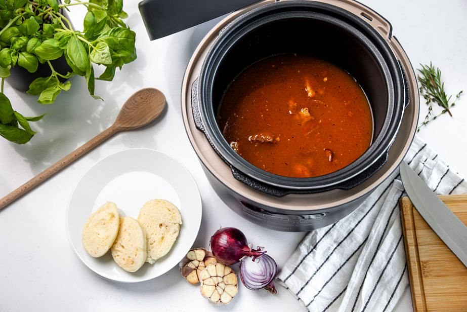 Přístroj disponuje 9 přednastavenými programy - rýže, hrubé obiloviny, porridge, vepřové, kuře, luštěniny/šlachovitá masa, rychlá omáčka, polévka, ohřev. Pouze veškeré suroviny vložíte do tlakového hrnce, uzavřete a navolíte příslušný program. Obdobně máte možnost vybrat si ze 3 úrovní struktury masa, tuhá až měkká. Čas vaření lze upravit i manuálně. Díky funkci Keep Warm udržíte jídlo teplé i pro opozdilce. Funkce odloženého startu zase pomůže, abyste po příchodu domů měli již jídlo hotové.