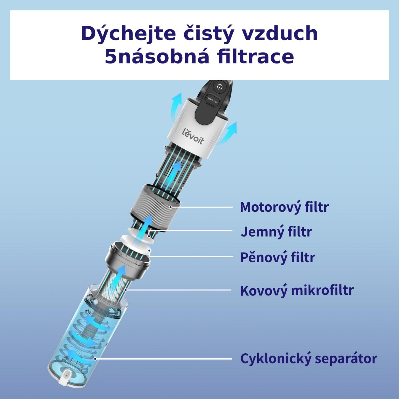 Akumulátorový tyčový vysavač Levoit LVAC-200 4v1 Aku Turbo Cyclone Tyčový vysavač Levoit je navrženýVíce