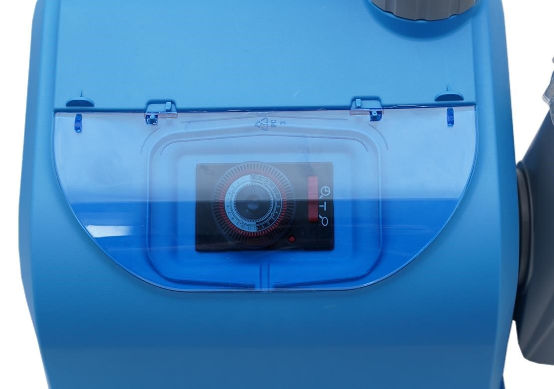Kromě atraktivního moderního designu potěší také svými kompaktními rozměry, prakticky zabudovaným čerpadlem se sítem hrubých nečistot přímo v těle nádoby. Šesticestný ventil nabízí mimo jiné i odlehčenou polohu pro zimní odstávku. Filtrace je vybavena navíc i časovačem spuštění.