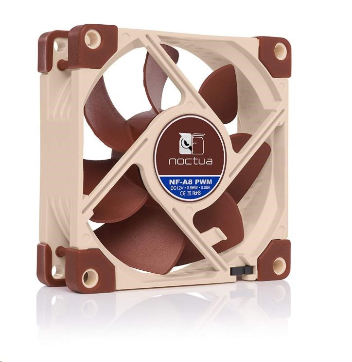 ventilátor, ultratichý, rozměry 80x80x25mm, max. hlučnost 17.7dBA, max. průtok 55.5m3/h, 1750/2200 otáček, 4pin PWM konektor, SSO2 ložisko