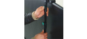 Inovativní design a bezpečnostní funkce, které bezpečně uzamknou obrazovku uvnitř pouzdra během přepravy. Po zvednutí opěrné tyče se pouzdro automaticky odemkne, což umožňuje vytažení obrazovky za rukojeť. Po zasunutí obrazovky se pouzdro automaticky uzamkne. Nosná tyč je také vybavena jednosměrným patentovaným zámkem, který umožňuje úplné zajištění a snadné nastavení opěrky zad. To vám umožní plynule upravit výšku obrazovky. Rukojeť neslouží pouze ke zvedání a vytahování zástěny z pouzdra, ale také k jejímu připevnění k nosné tyči, aby se zástěna nespadla nebo se posunula.