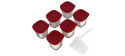 Součástí balení je 6 nádob po 140 ml s víčkem a sítkem a také podnos s uchy, který lze použít k uložení 6 sklenic pro snadnou přepravu v chladničce. Lze mýt v myčce nádobí a 100% neobsahuje BPA