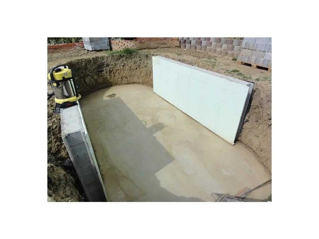 Postavený bazén doporučujeme odizolovat (např. Styrodur) a zasypat suchým betonem.