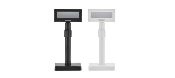 Customer display, 2x20 characters (LCD), RS232, emulation: ESC/POS, incl.: power supply unit, power cable, large stand, colour: black.