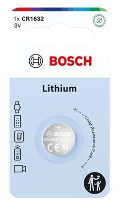 (BAL:1/20/960) Typ: CR1632. Napětí: 3V. Lithiová baterie. Kvalitní baterie Bosch. Cena je uvedena za jeden kus. V balení na blistru 1ks.. Robert Bosch GmbH, Robert-Bosch-Platz 1 70839 Gerlingen Německo, Kontakt: www.bosch.cz
