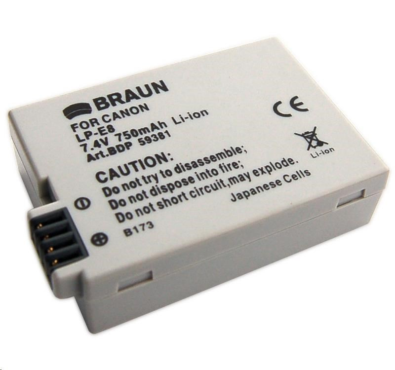 Li-Ion akumulátor Braun BDP-CLPE8 (D107, CANON LP-E8 - 7,4 V/750 mAh)