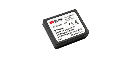 Li-lon akumulátor Braun BDP-PS303 (18, PANASONIC S303 - 7,4 V/760 mAh) pro digitální videokamery PANASONIC SDR S100, S150, S200, S300. Tento akumulátor je dodáván v částečně nabitém stavu. Před použitím je vhodné akumulátor nabít. Plné kapacity akumulátoru může být dosaženo až po cca 4-5 nabíjecích cyklech. V případě více modelů jednoho typu akumulátoru s různou kapacitou vybírejte podle doporučení výrobce přístroje !!! Vyšší kapacita umožňuje delší dobu záznamu, ale větší rozměr (výška) akumulátoru může komplikovat nebo zcela bránit použití !!!. Braun GmbH, Frankfurter Str. 145 61476 Kronberg im Taunus Německo, Kontakt: https://www.braun.cz/cs-cz/contactus