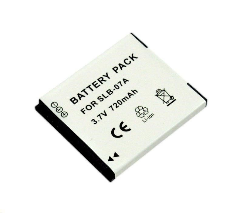 Li-Ion akumulátor Braun BDP-SLB07A (D104, Samsung SLB-07A - 3,7 V/720 mAh) pro digitální fotoaparáty SAMSUNG Digimax ST45, ST50, ST500, ST550, ST600, TL100, TL105, TL110, TL220, TL225. Tento akumulátor je dodáván v částečně nabitém stavu. Před použitím je vhodné akumulátor nabít. Plné kapacity akumulátoru může být dosaženo až po cca 4-5 nabíjecích cyklech.. Braun GmbH, Frankfurter Str. 145 61476 Kronberg im Taunus Německo, Kontakt: https://www.braun.cz/cs-cz/contactus
